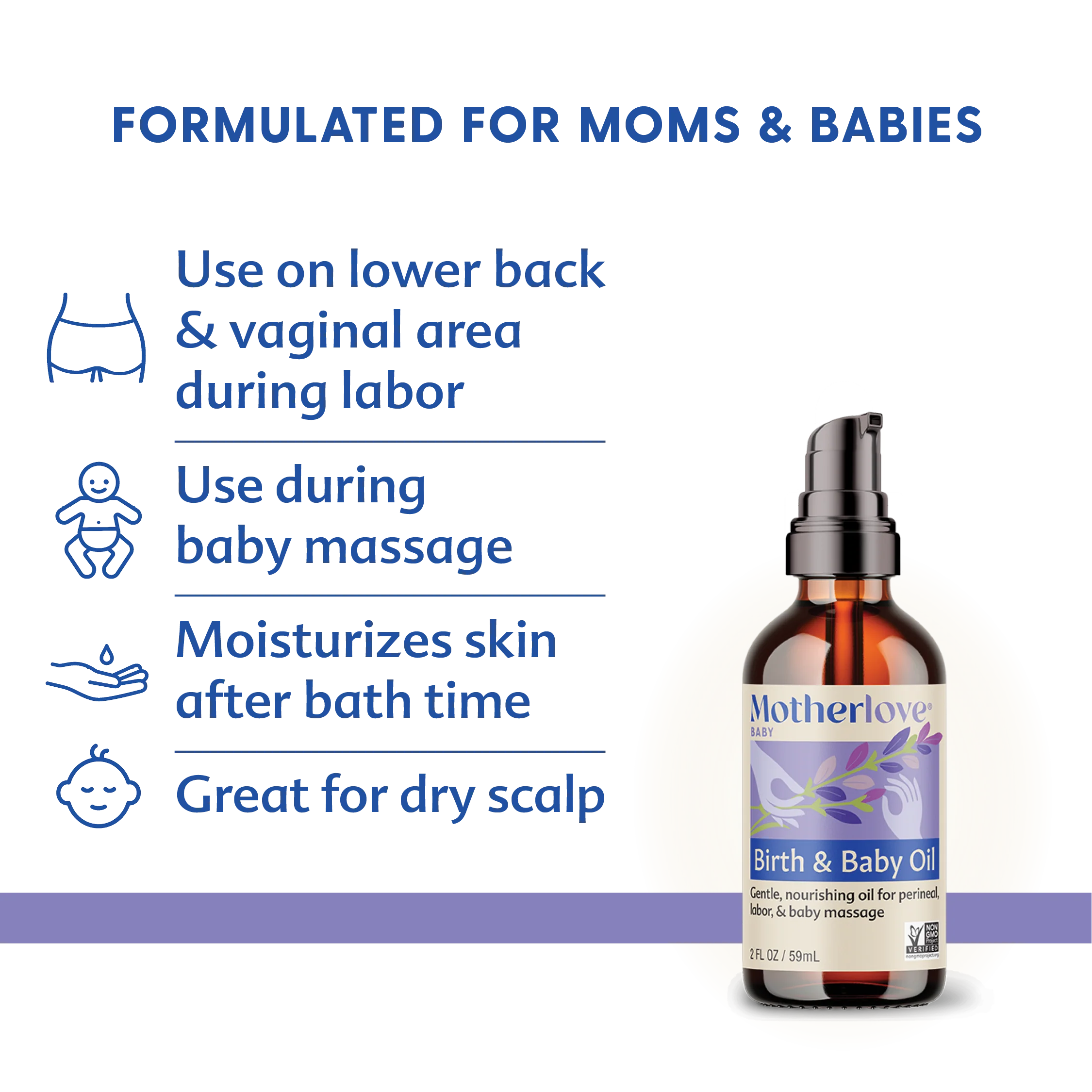 Birth & Baby Oil's versatility makes it great for moms to: